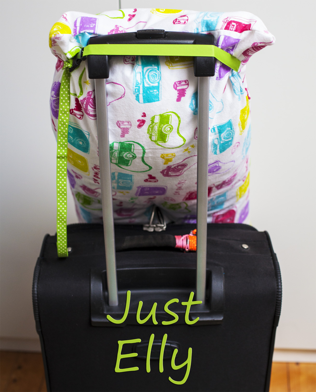 If I would do it again I would take a much larger ribbon below. This bag cant be attach directly to your suitcase because the ribbon is to short.