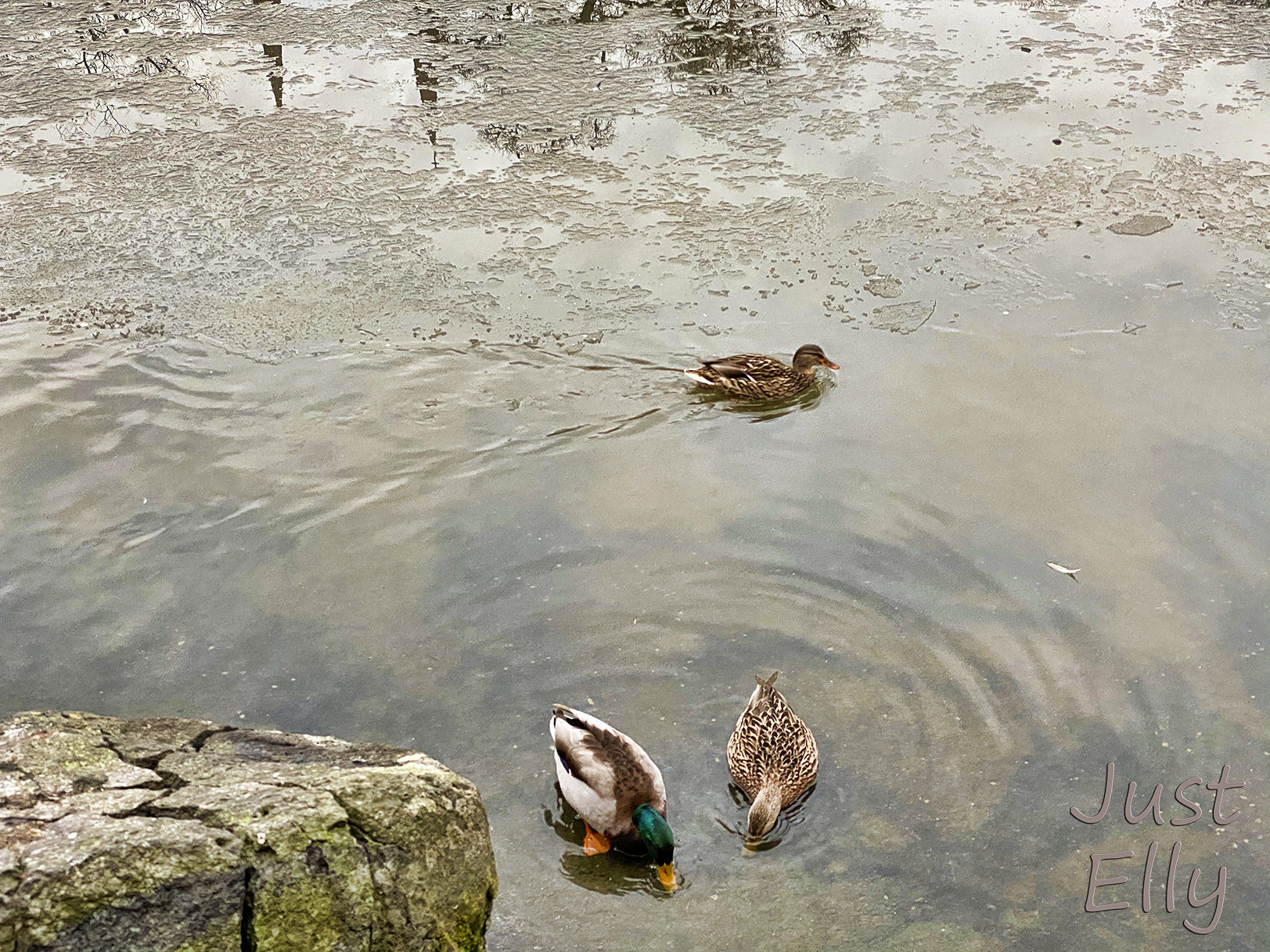 Here you can see how cold it was that weekend. Behind the ducks you can see that there is a layer of ice on the water.