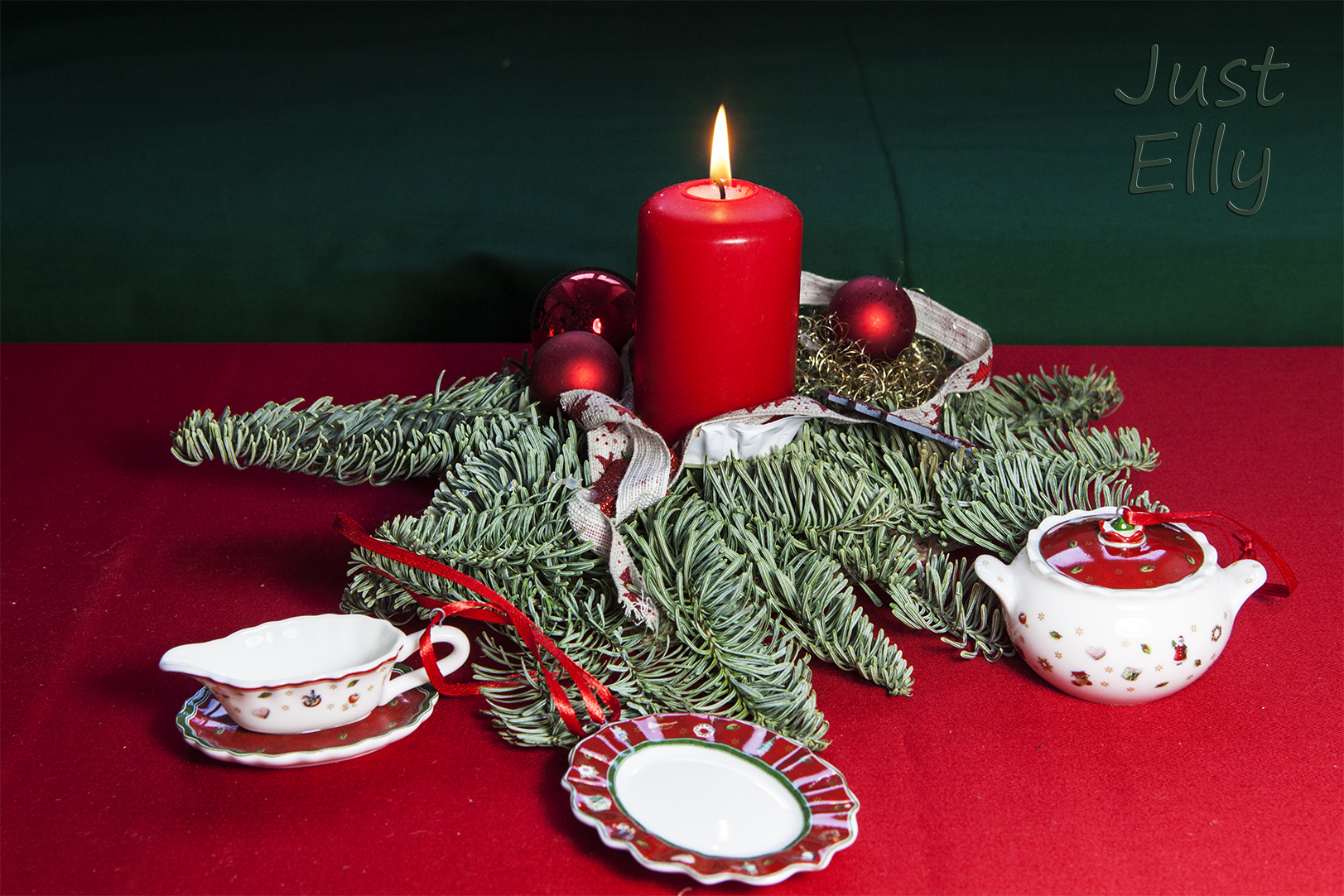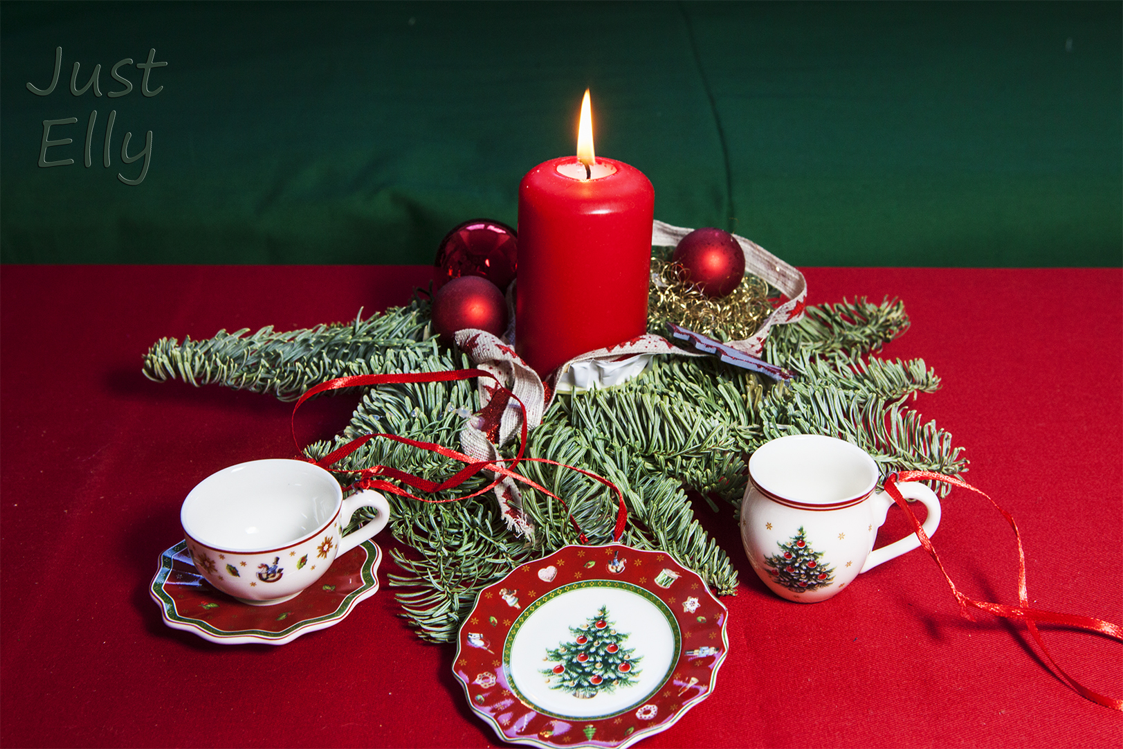 Actually, I wanted to make a new picture with my Advent wreath and candles every Sunday. As I said, the stupid cold came in between. But today at least the wreath with 4 glowing candles 🙂