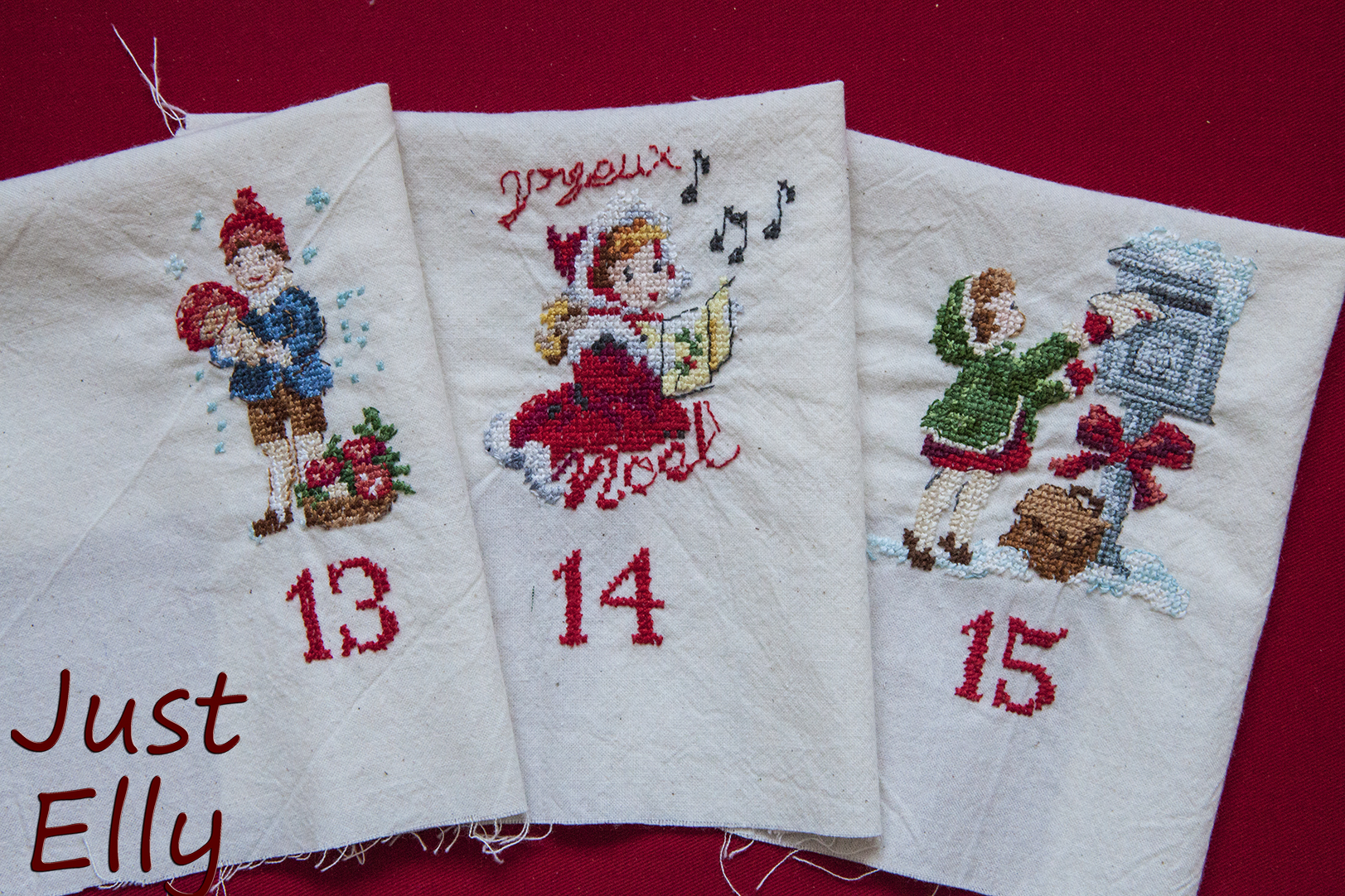For example, where the numbers should go or your motif. The entire calendar looks a little more even if the numbers are in the same place on each pocket.