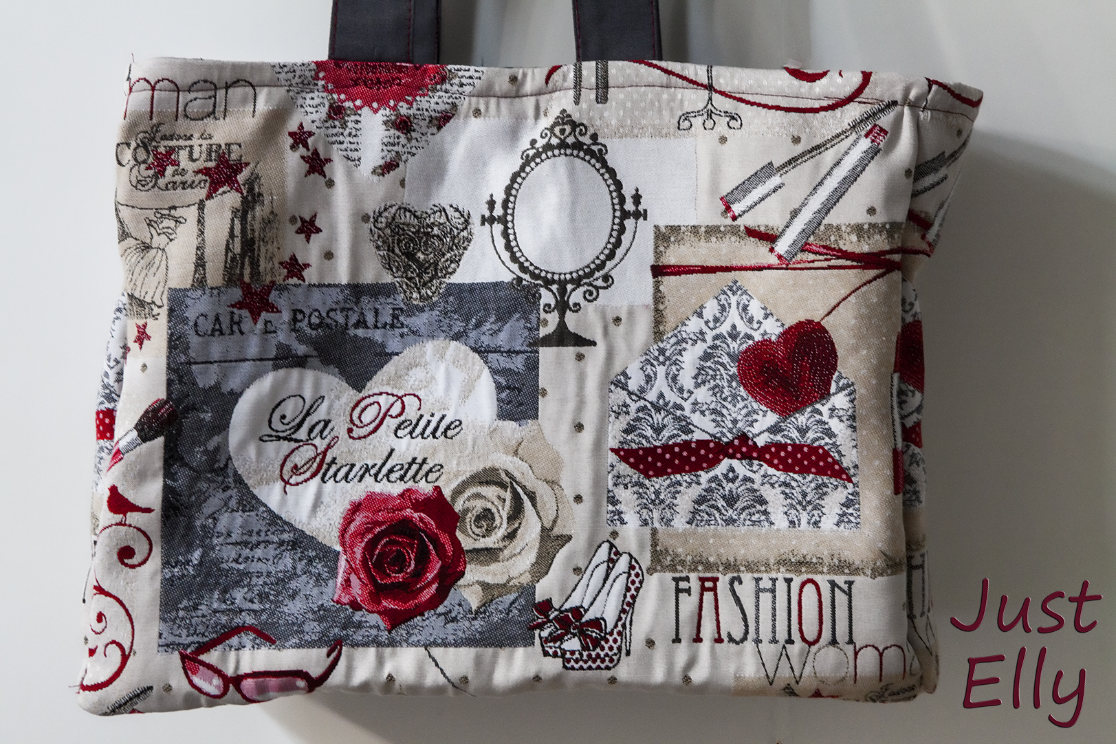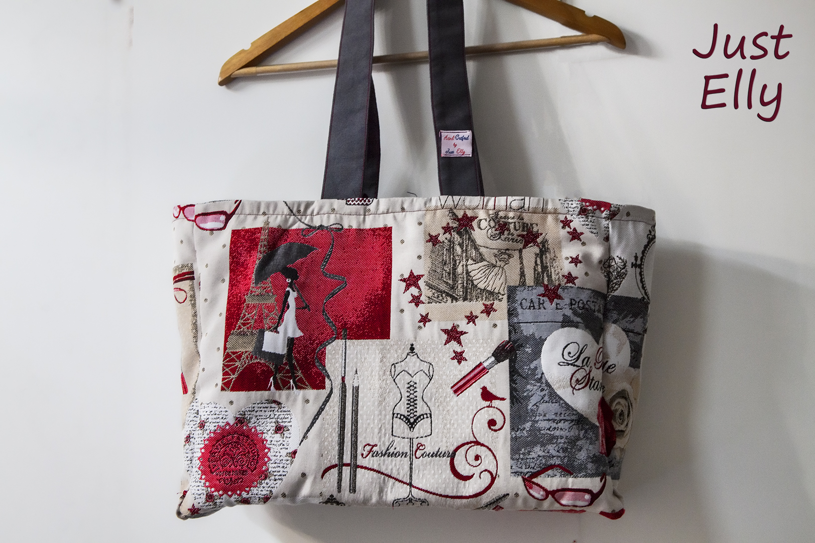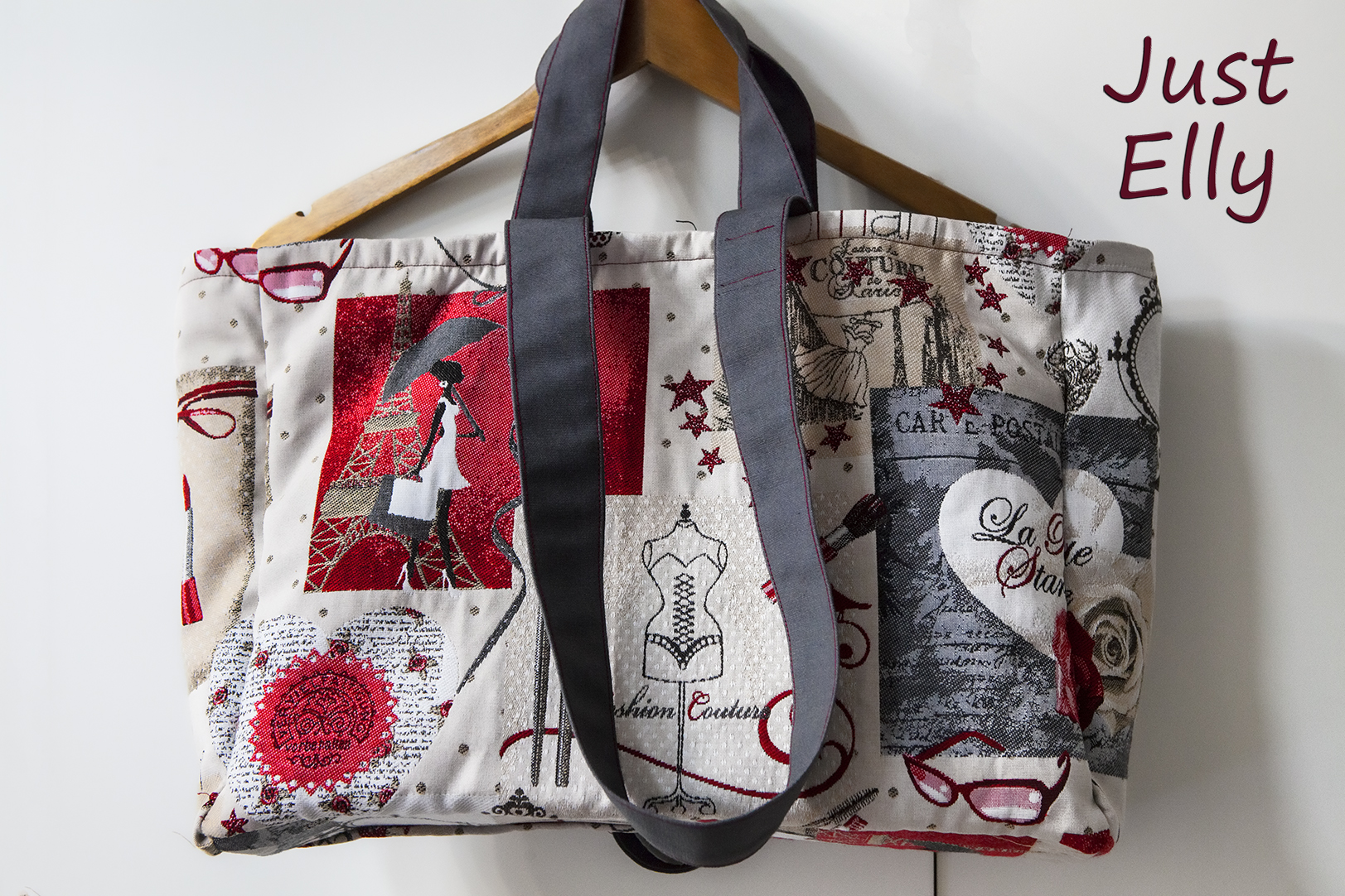 I made the bag with two handles. You can carry it over your shoulder and with the short handles in your hand. Just how you like it.